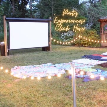 Picture a magical Backyard Movie Night under a canopy of stars, complete with giant screen and plush seating for ultimate comfort.